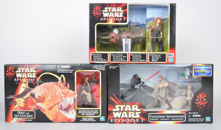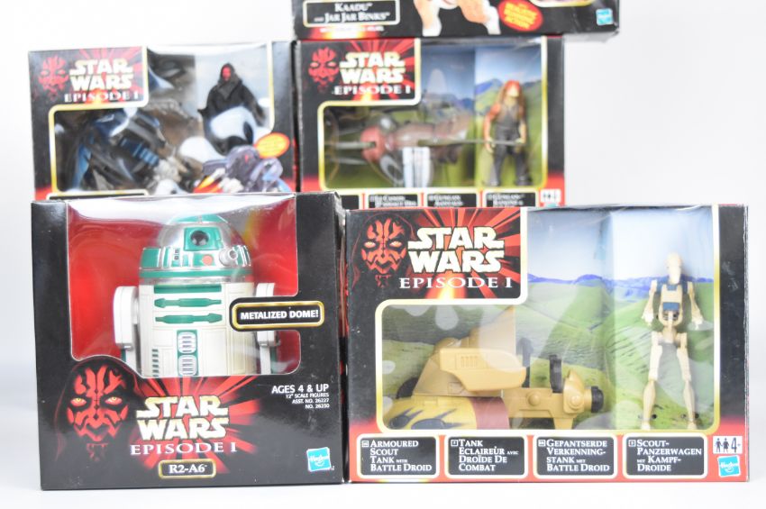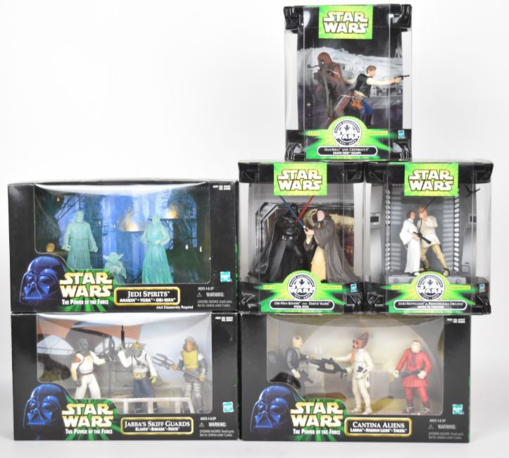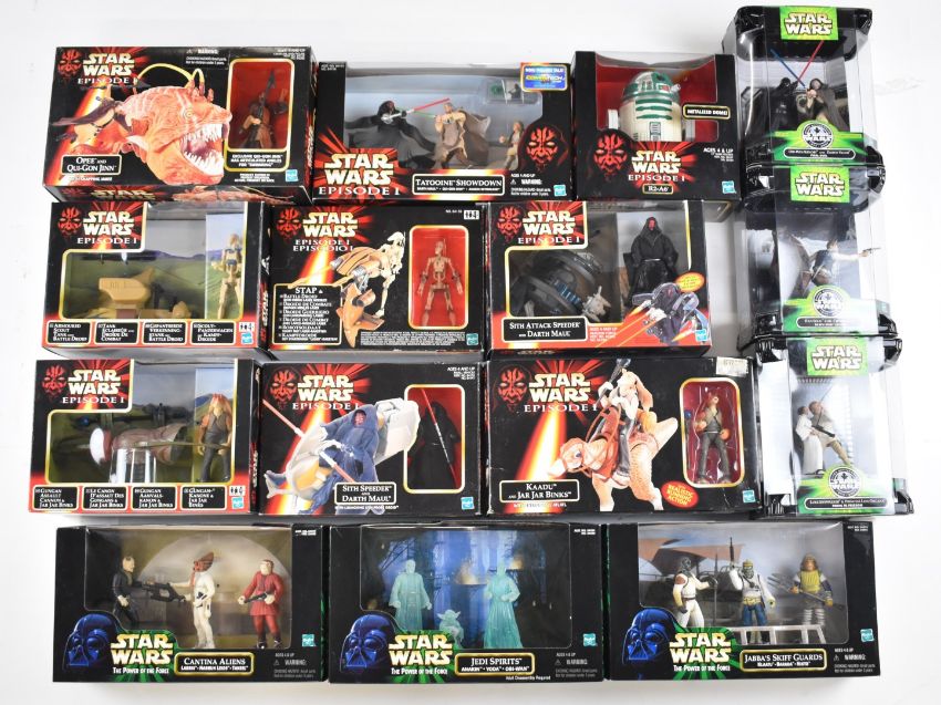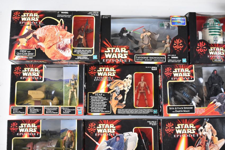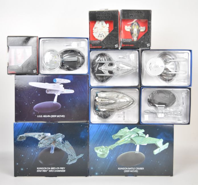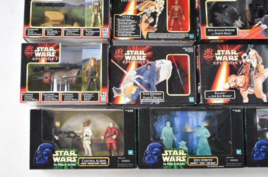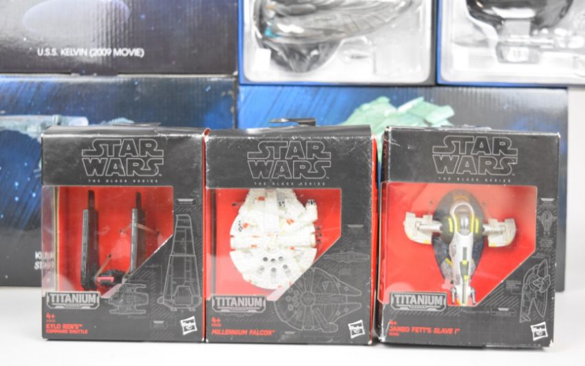 Nineteen Hasbro Star Wars action figures to include The Power of the Force, Episode I and The Black Series, together with eight Eaglemoss and similar Star-Trek spaceships.