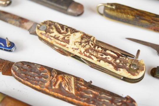 Twenty two pocket / folding knives including a Rostfrei and Frederick Reynolds of Sheffield example etc, longest blade 9.5cm. PLEASE NOTE ALL BLADED ITEMS ARE SUBJECT TO OVER 18 CHECK ON COLLECTION OR DELIVERY
