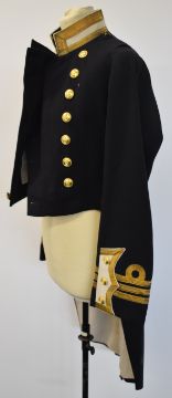 Royal Navy officer's tail coat with Commander rank insignia to cuff, associated buttons, trousers and aiguletts