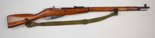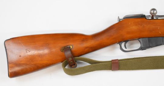 Russian Mosin-Nagant 7.62mm bolt-action rifle with adjustable sights, breech stamped with arrow in star and 1939, canvas and leather sling and 30 inch barrel, overall length 122.5cm, serial number NA2001. PLEASE NOTE THAT A VALID RELEVANT FIREARMS/SHOTGUN CERTIFICATE IS REQUIRED TO HANDLE/PURCHASE THIS ITEM.
