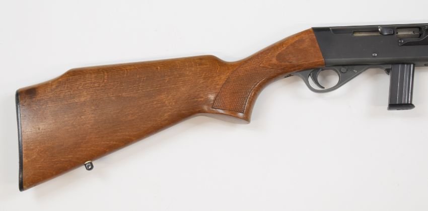 Anschutz Model 520 .22 semi-automatic rifle with extended magazine, chequered semi-pistol grip, sling mounts, adjustable sights, sound moderator and 22 inch barrel, overall length 106cm, serial number 127842. PLEASE NOTE THAT A VALID RELEVANT FIREARMS/SHOTGUN CERTIFICATE IS REQUIRED TO HANDLE/PURCHASE THIS ITEM.