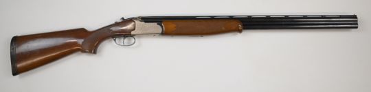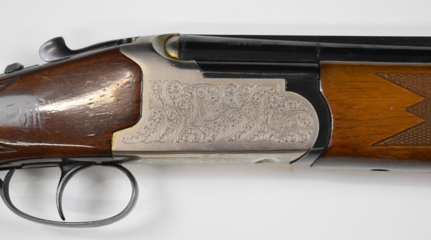 Lanber 12 bore over and under ejector shotgun with engraved scenes of birds to the locks and underside, scrolling engraving to the trigger guard and thumb lever, chequered semi-pistol grip and forend, vented top rib, single trigger and 27.5 inch barrels choked ½ and full, overall length 113cm, length of pull 37cm, serial number 257915. PLEASE NOTE THAT A VALID RELEVANT FIREARMS/SHOTGUN CERTIFICATE IS REQUIRED TO HANDLE/PURCHASE THIS ITEM.