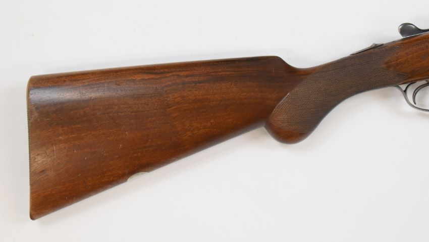 Midland Gun Co 16 bore side by side shotgun with chequered semi-pistol grip and forend, named and engraved locks, engraved underside, thumb lever and fences, vacant cartouche to the underside of the stock, double trigger and named 28 inch barrels, overall length 113.5cm, length of pull 37cm, serial number 92703. PLEASE NOTE THAT A VALID RELEVANT FIREARMS/SHOTGUN CERTIFICATE IS REQUIRED TO HANDLE/PURCHASE THIS ITEM.