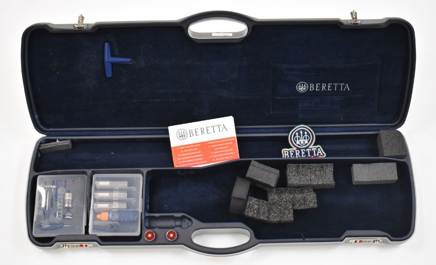 Beretta DT11 Skeet 12 bore over and under ejector shotgun with named locks and underside, chequered semi-pistol grip and forend, adjustable comb, single trigger, vented top and central ribs and 28.75 inch multi-choke barrels, overall length 116.5cm, length of pull 37cm, serial number DT20934W, in original fitted case with additional chokes, choke key, accessories, related paperwork and stickers. PLEASE NOTE THAT A VALID RELEVANT FIREARMS/SHOTGUN CERTIFICATE IS REQUIRED TO HANDLE/PURCHASE THIS ITEM.