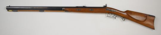 Pedersoli .45 percussion hammer action rifle with adjustable sights, spurred trigger guard, set trigger, storage compartment to the stock, brass tipped wooden ram-rod and 32 inch rifled octagonal barrel, overall length 123cm, serial number 63371. PLEASE NOTE THAT A VALID RELEVANT FIREARMS/SHOTGUN CERTIFICATE IS REQUIRED TO HANDLE/PURCHASE THIS ITEM.
