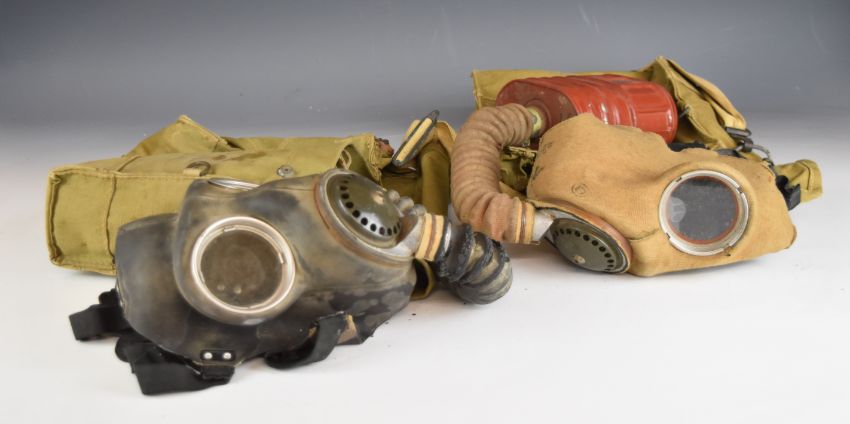 Two British WW2 respirators / gas marks, one by Dunlop the other Avon, both with haversacks