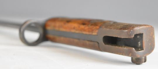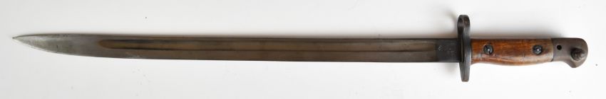 British WW1 1907 pattern sword bayonet by Wilkinson dated 1917, some good stamps to ricasso with 43cm blade and scabbard. PLEASE NOTE ALL BLADED ITEMS ARE SUBJECT TO OVER 18 CHECK ON COLLECTION OR DELIVERY