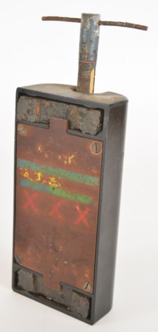 British WW2 clam limpet mine with Bakelite body and wooden dummy in place of 'L' delay time pen