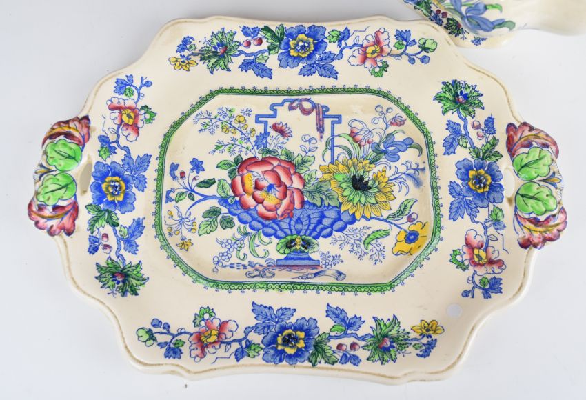 Mason's twin handled pedestal tureen, ladle and underplate decorated in the Strathmore pattern, height 36cm