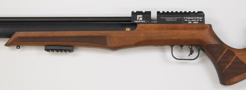 Reximex LYRA .22 PCP air rifle with chequered semi-pistol grip, adjustable trigger, 12-shot magazine and bi-pod and scope rails, serial number 629-H23HK-1673, in original box.
