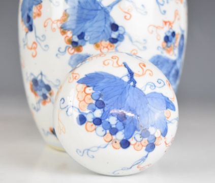 19thC Chinese covered ginger jar with flying fox decoration and six character mark to base, height 16cm