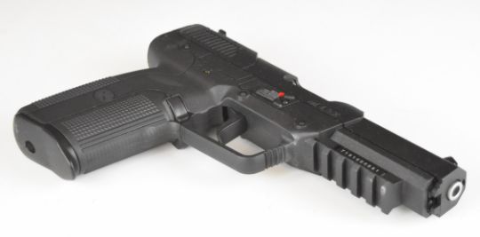 Cybergun FN Five-Seven 6mm COair pistol with monogrammed and textured grips, multi-shot magazine and adjustable sights, serial number 7191000881, in original box with instructions.
