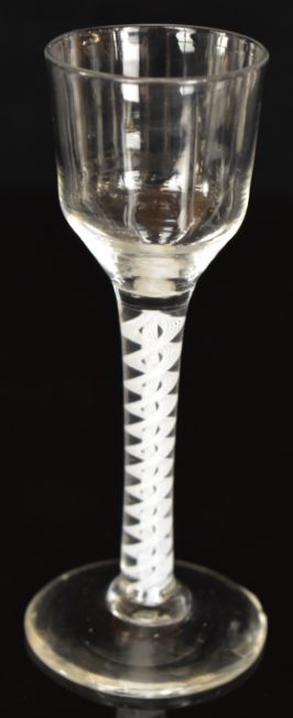 Two Georgian drinking glasses each with cotton twist stem, largest 14.5cm tall.