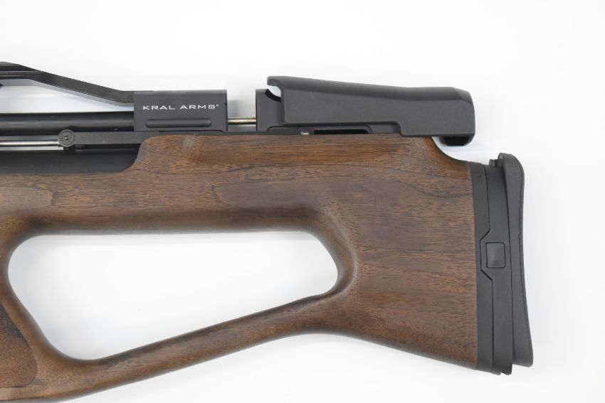 Kral Puncher Empire XS .177 PCP carbine air rifle with textured pistol grip, two 14-shot magazines and scope rail, serial number 633-G22HK-13691, in original box with instructions and accessories.