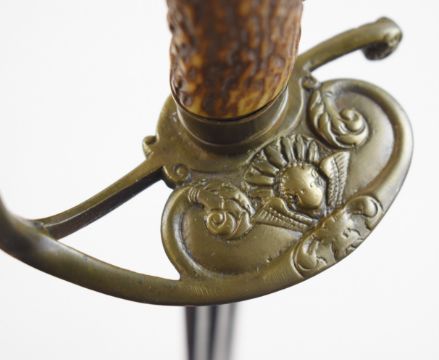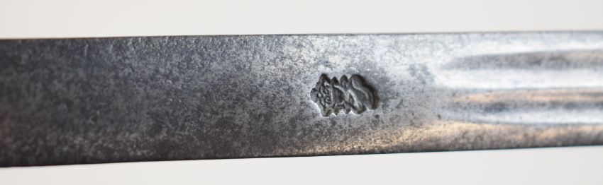 German late 16th / early 17thC sword with later hilt, blade inscribed 'Jaspar Bongen me fecit Solingen' (Jaspar Bongen made me in Solingen) with maker's mark of crowned stag to 68cm part fullered blade. Jaspar Bongen was a late 16th - early 17thC swordsmith based in Solingen. PLEASE NOTE ALL BLADED ITEMS ARE SUBJECT TO OVER 18 CHECK ON COLLECTION OR DELIVERY