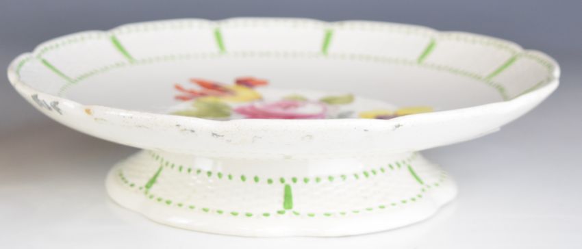 Wedgwood dessert set with relief moulded basket weave surround and floral decoration, comprising eight plates, tazza and oval dish, largest 29cm