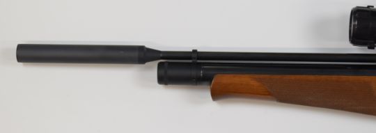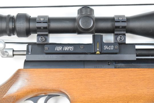 Air Arms S410 .22 PCP air rifle with chequered semi-pistol grip and forend, raised cheek piece, 10-shot magazine, sound moderator and Webley 3-9x40 scope, serial number 020627, with 3l 3.69kg re-filling bottle.  Please note we are not able to offer our usual postage service for this lot
