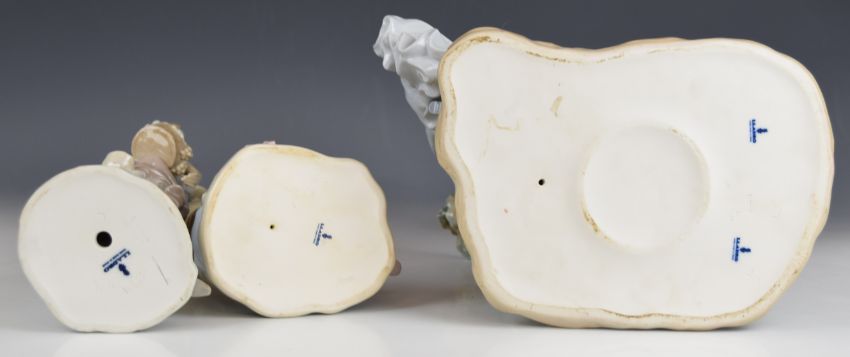 Three Lladro figurines including a lady with children, tallest 29cm