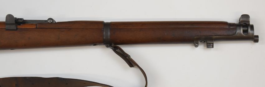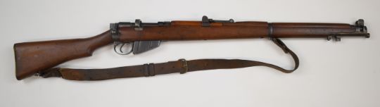 BSA Short Magazine Lee-Enfield (SMLE) Mk III .303 bolt-action service rifle with adjustable sights, storage compartment to the brass butt plate, frame stamped with crown over GR cypher and ' B1942 Sht.L.E. III', leather sling and 25 inch barrel, overall length 113cm, serial number 82307. PLEASE NOTE THAT A VALID RELEVANT FIREARMS/SHOTGUN CERTIFICATE IS REQUIRED TO HANDLE/PURCHASE THIS ITEM.