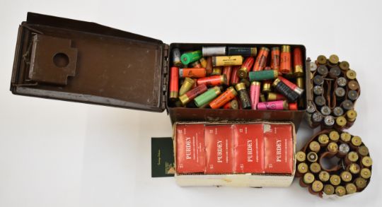 Three-hundred-and-eighty mainly 12 bore collector's shotgun cartridges including 100 Purdey in original boxes, some in cartridge belts and some in a metal ammunition carrier. PLEASE NOTE THAT A VALID RELEVANT FIREARMS/SHOTGUN CERTIFICATE IS REQUIRED TO HANDLE/PURCHASE THIS ITEM. We are not able to offer our usual postage service for this lot