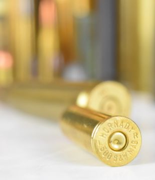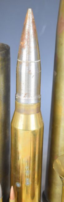 Six brass shell cases including 1917, two with projectiles, together with some insert small arms ammunition