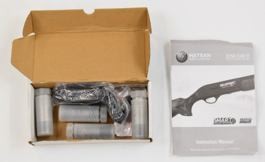 Hatsan Escort Magnum 12 bore 3-shot semi-automatic shotgun with composite stock, chequered semi-pistol grip and forend, vented rib and 28 inch multi choke barrel, overall length 124.5cm, length of pull 37cm, serial number 469780, with four additional chokes, instructions and accessories. PLEASE NOTE THAT A VALID RELEVANT FIREARMS/SHOTGUN CERTIFICATE IS REQUIRED TO HANDLE/PURCHASE THIS ITEM.