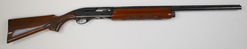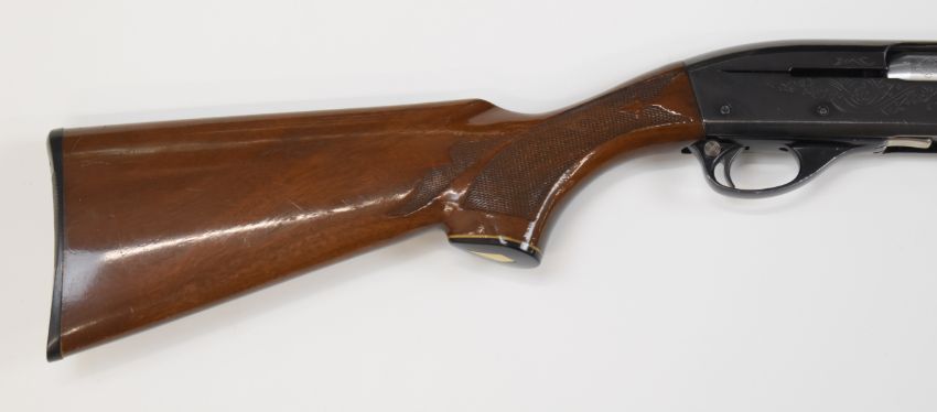 Remington Model 1100 12 bore 3-shot semi-automatic shotgun with ornately carved and chequered semi-pistol grip and forend, engraved lock and bolt, vented rib and 25.5 inch unchoked barrel, overall length 116.5cm, length of pull 35.5cm, serial number L638007V. PLEASE NOTE THAT A VALID RELEVANT FIREARMS/SHOTGUN CERTIFICATE IS REQUIRED TO HANDLE/PURCHASE THIS ITEM.