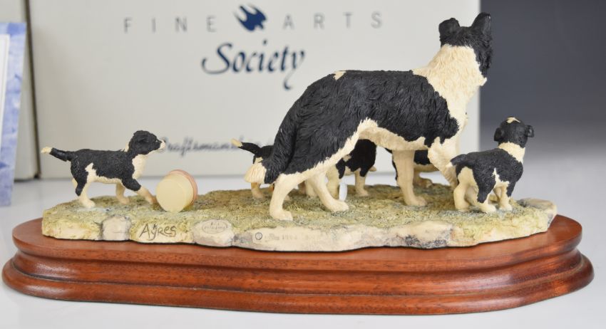 Border Fine Arts two Society models 'Summer Fun' and 'Wait For Me' sheepdog figural group, both by Ray Ayres and boxed, one with certificate and one with incorrect base, tallest 16cm