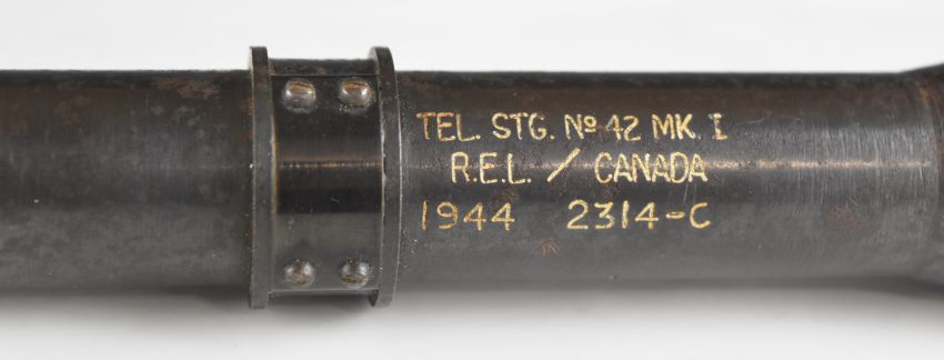 WW2 No. 42 Mk I scope stamped 'Tel Stg No 42 MK.I R.E.L/ Canada 1944 2314-C', 28cm long.
