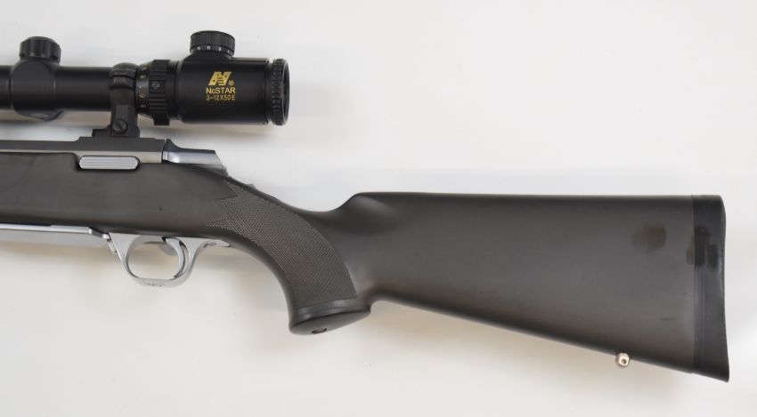 Browning A-Bolt .223 bolt-action rifle with textured semi-pistol grip and forend to the composite stock, sling mounts, sound moderator, NcStar 3-12x50 scope and 25 inch barrel, overall length 112.5cm, serial number 60180MT351, in padded carry case with accessories. PLEASE NOTE THAT A VALID RELEVANT FIREARMS/SHOTGUN CERTIFICATE IS REQUIRED TO HANDLE/PURCHASE THIS ITEM.