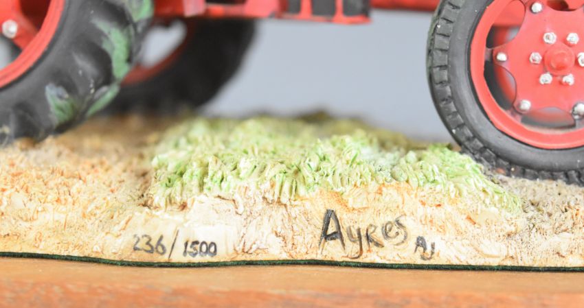 Border Fine Arts David Brown Cropmaster tractor model 'First Cut' by Ray Ayres on base, height 15 x length 33cm