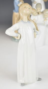 Collection of Lladro / Nao figures, the four largest Lladro includes lady with dog, tallest 28cm