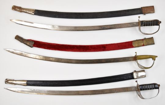Three made in India tourist swords, longest blade 72cm. PLEASE NOTE ALL BLADED ITEMS ARE SUBJECT TO OVER 18 CHECK ON COLLECTION OR DELIVERY