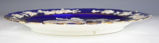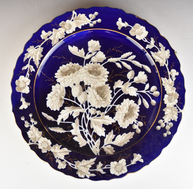 19th / 20thC Bohemian charger with relief moulded white flower decoration on a navy ground, diameter 47cm