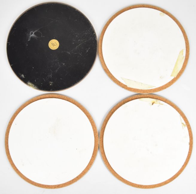 A set of five place mats in the form of Hull and Eley shotgun cartridge ends, each 28cm in diameter.