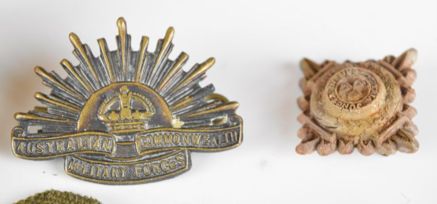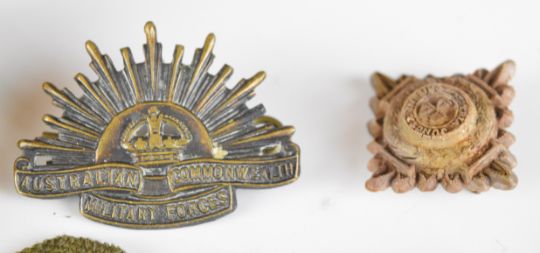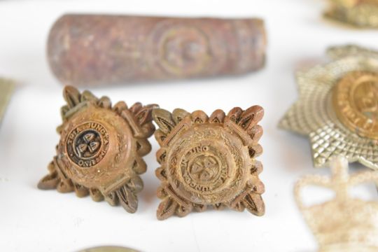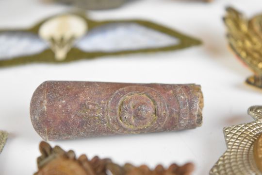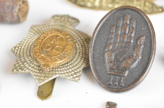 British WW2 badges / insignia including two hallmarked silver ARP badges, silvered Royal Green Jackets cap badge, etc
