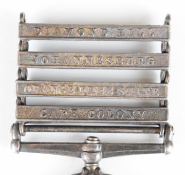 Queen's South Africa Medal with clasps for Cape Colony, Orange Free State, Johannesburg and Diamond Hill named to 456 Pte G Wilson, Marshall's Horse