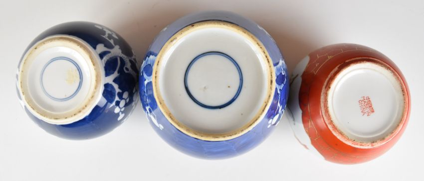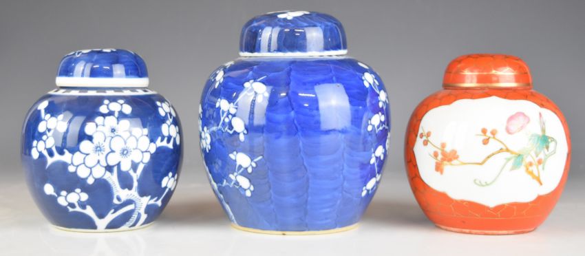 Three Chinese ginger jars including two prunus blossom examples, tallest 14cm