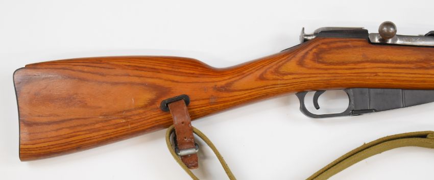 Russian Mosin-Nagant 7.62mm bolt-action rifle with adjustable sights, breech stamped 1943, canvas and leather sling and 20.5 inch barrel, overall length 101.5cm, serial number NN6700. PLEASE NOTE THAT A VALID RELEVANT FIREARMS/SHOTGUN CERTIFICATE IS REQUIRED TO HANDLE/PURCHASE THIS ITEM.
