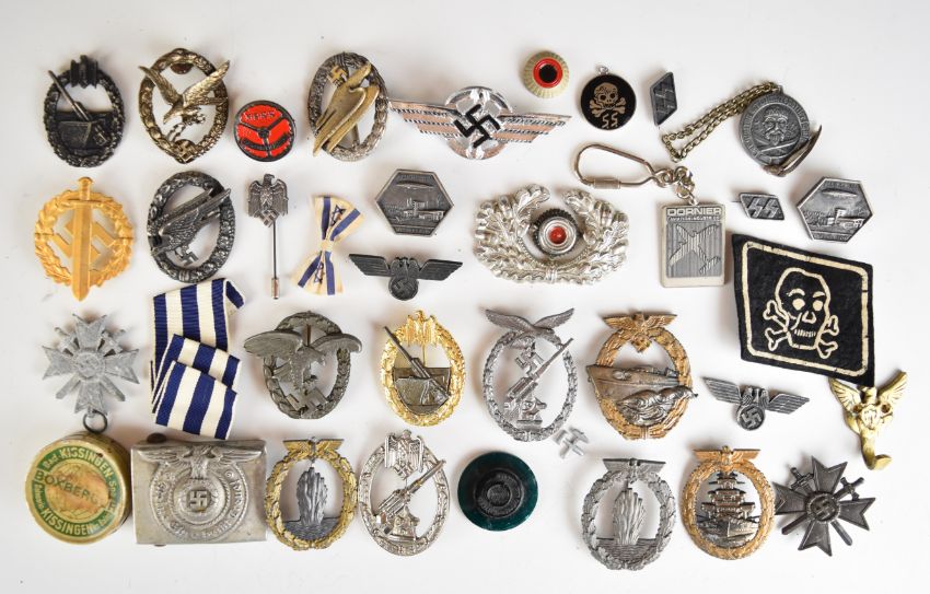 Replica German WW2 Nazi Third Reich badges, insignia and medals including High Seas Fleet, Artillery and Luftwaffe, etc