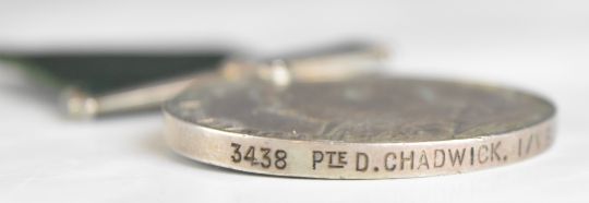 British Army Edward VII Volunteer Long Service Medal named to 3438 Pte D Chadwick, 1st Volunteer Battalion Lancashire Fusiliers