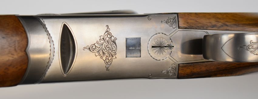 SKB 500 12 bore over and under ejector shotgun with engraved locks, underside, trigger guard and thumb lever, chequered semi-pistol grip and forend, single trigger, vented top rib and 26 inch barrels choked ½ and improved cylinder, overall length 109cm, length of pull 35cm, serial number 53169. PLEASE NOTE THAT A VALID RELEVANT FIREARMS/SHOTGUN CERTIFICATE IS REQUIRED TO HANDLE/PURCHASE THIS ITEM.