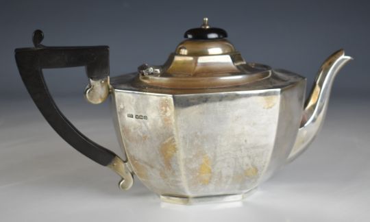 Art Deco hallmarked silver three piece octagonal tea set, Sheffield 1931, maker Viner's Ltd, length of teapot 29cm, weight of all three pieces 1067g all in
