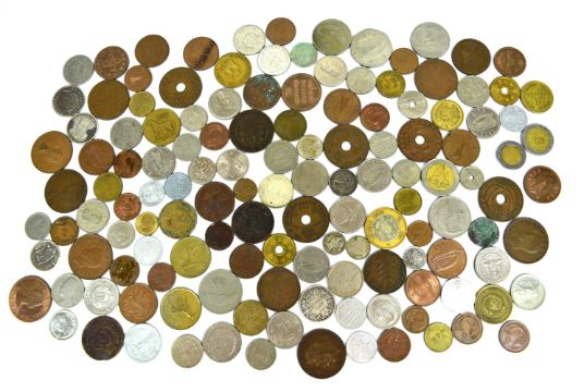 An amateur collection of overseas coinage includes some USA silver 1909 Morgan half dollar, Irish Free State, etc