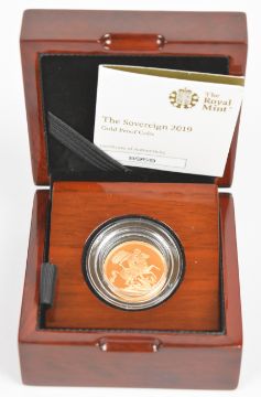 Royal Mint 2019 cased limited edition no 8959 of 9,500 proof gold full sovereign, with certificate