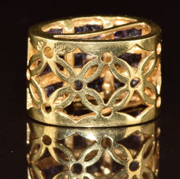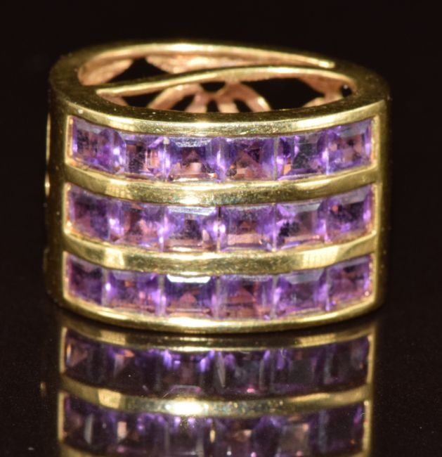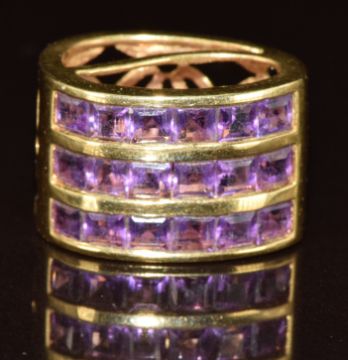 An 18k gold pendant set with amethysts, for an omega chain, 6.1g, 2 x 1.3cm