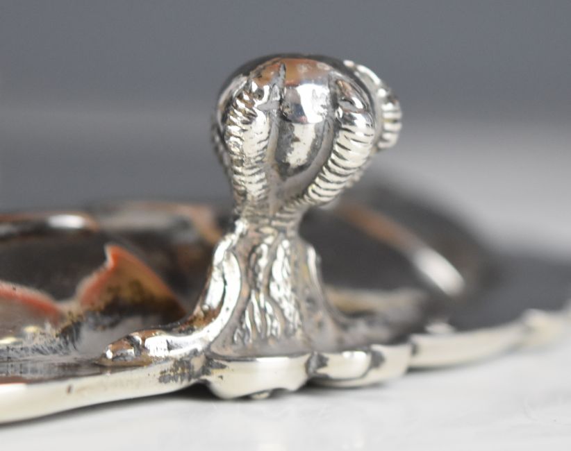 George V hallmarked silver salver with shaped edge, raised on three ball and claw feet, Birmingham 1915, maker George Nathan & Ridley Hayes, diameter 26cm, weight 565g