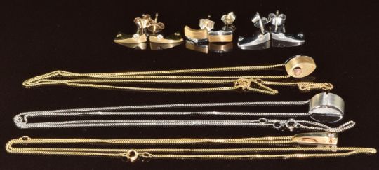 A collection of Kit Heath jewellery comprising two suites of 9ct gold bi-coloured jewellery comprising necklace and earrings set with diamonds, 9ct white gold pendant set with a diamond on 9ct white gold chain and a pair of 9ct white gold earrings each set with a diamond, 10.1g