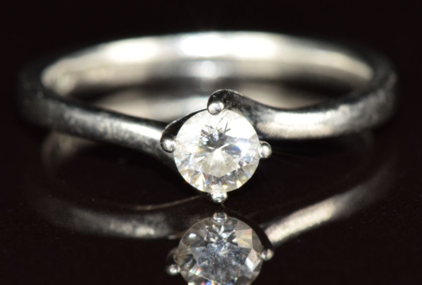 A platinum ring set with a round cut diamond of approximately 0.26ct, 3.5g, size K