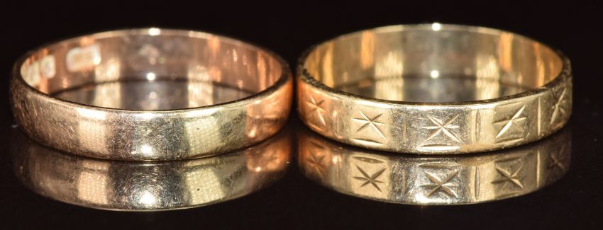 Two 9ct gold wedding bands / rings, 4.6g, size S